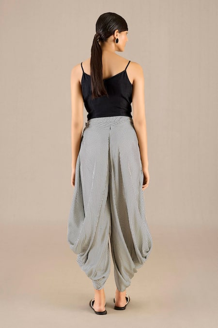 Stripe detailed draped dhoti pant, Open jacket design, Sleeveless inner top