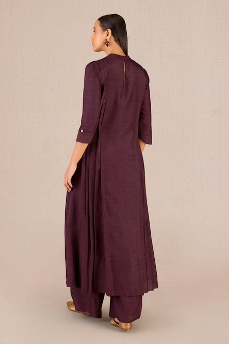 Burgundy Silk Round Neck Saimah Knife Pleated Kurta Palazzo Set