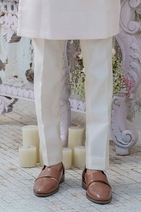 Multicolor bundi featuring floral thread embroidery with a mandarin collar. Paired with an ivory kurta and trouser in cotton silk.