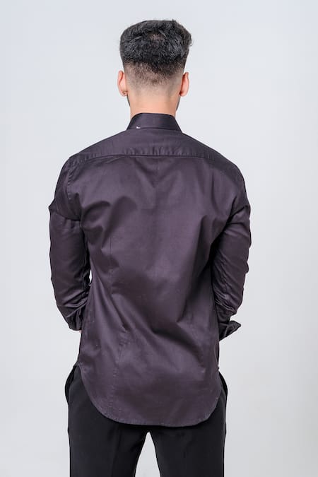 Black shirt featuring a hand-painted king lion motif with a collar and full sleeves