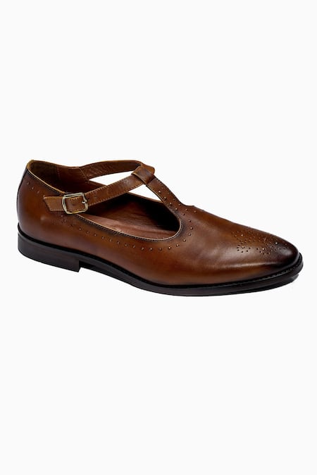 Buy_Amrit Dawani_Brown Studs Wingtip Brogue Oxford Sandals_at_Aza_Fashions