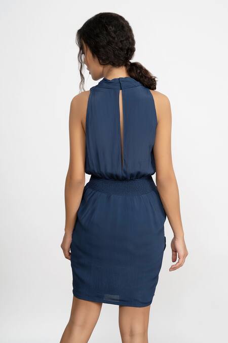 Back cut-out detailing, Hand pleated detailing, Cowl drape tapered at bottom hem