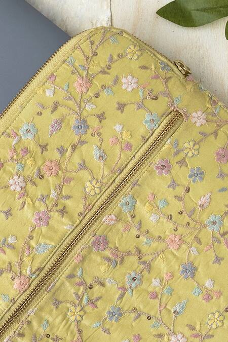 Yellow Floral Embroidered Laptop Sleeve