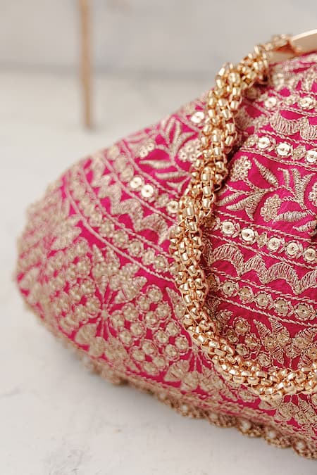 Pink clutch featuring all over thread embroidery and sequin embellishments