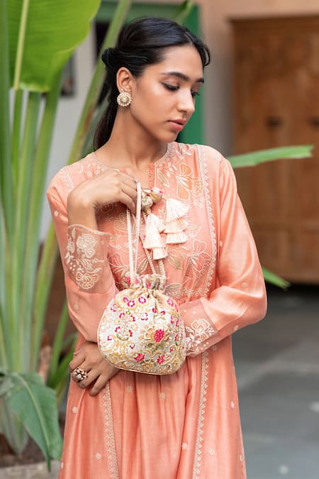 Floral embroidery with sequins, Pull-out drawstring with tassels