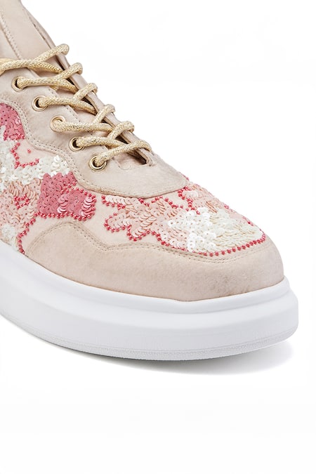 Pink Begums Sequin Embroidered Wedding Sneakers
