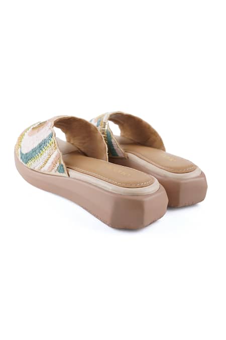 Beige Embroidery Coral Pop Sandals