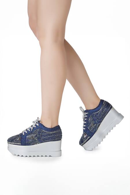 Blue Cut Work, Sequins, Beads Crescendo Wedding Wedge Sneakers