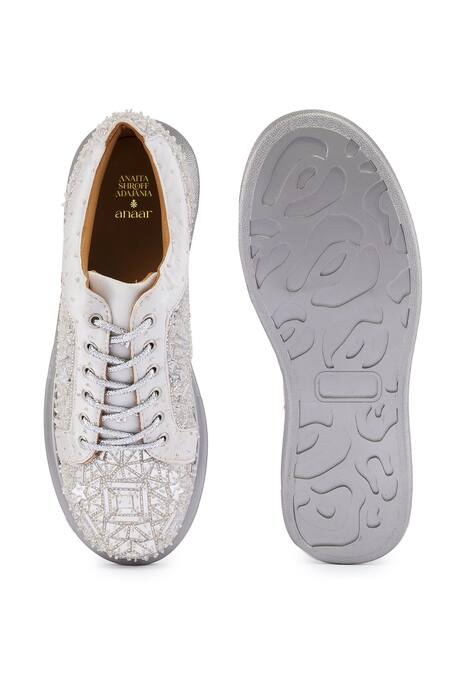 Anaar_Silver Cutdana Embroidered Flat Sneakers _Online_at_Aza_Fashions