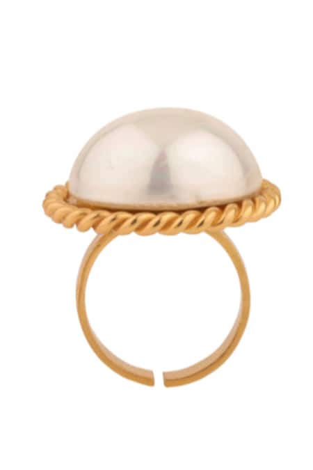 Gold adjustable ring featuring a large bead embellishment with a twisted rope design