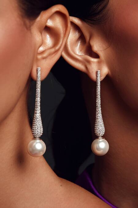 White Stones, Pearls Twinkle Studded Drop Earrings