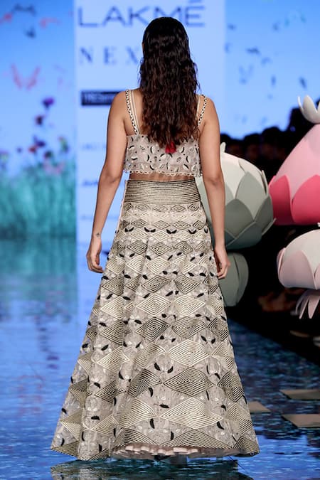 Buy_Payal Singhal_Pink Organza Thread Square Neck Anahita Lehenga Set _at_Aza_Fashions