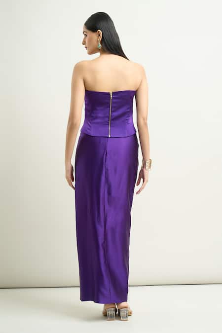 Purple Silk Embroidery Sweetheart Neck Cape And Draped Skirt Set