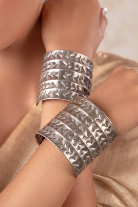 Hammered texture adds a unique design element., Press closure for easy wear and removal.