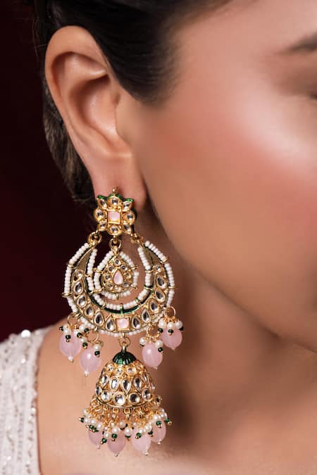 22k gold plating, Pink and white pearl drops, Kundan and semi-precious stone detailing