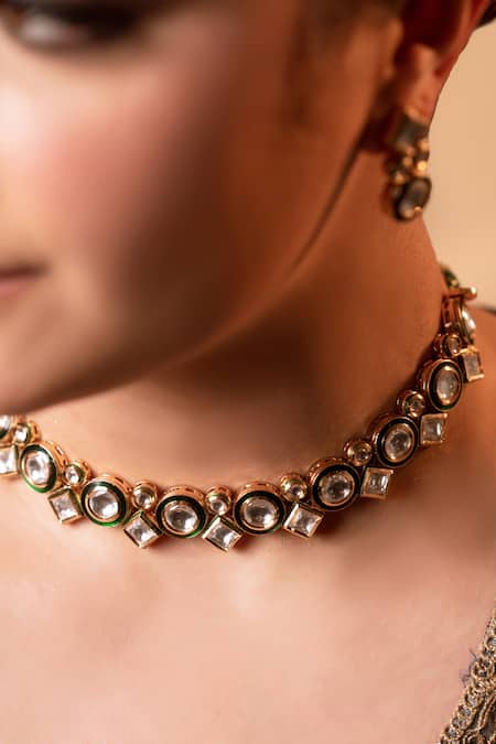 Green Diamonds, Stones Janki Kundan Studded Necklace Set