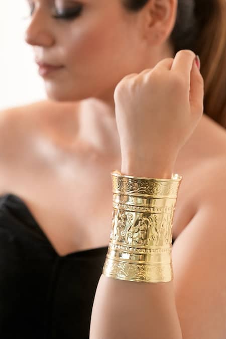 Buy_Anana_Gold Plated Floral Carved Kada Set _at_Aza_Fashions
