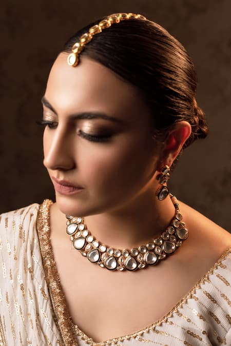 Buy_Anana_Gold Plated Diamonds, Stones Ragini Polki Embellished Necklace Set _at_Aza_Fashions