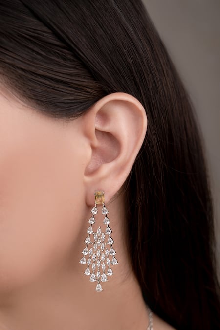 Layered design with diamond-like embellishments, Hook closure for necklace, Push back closure for earrings