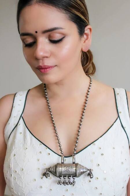 Buy_Anana_Silver Plated Tribal Carved Pendant Necklace_at_Aza_Fashions
