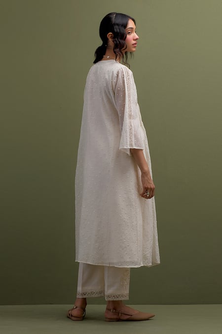 Buy_Anantaa By Roohi_Ivory Chanderi Cut Work, Sequins, Embroidery Floral Gathered Kurta With Pant _Online_at_Aza_Fashions