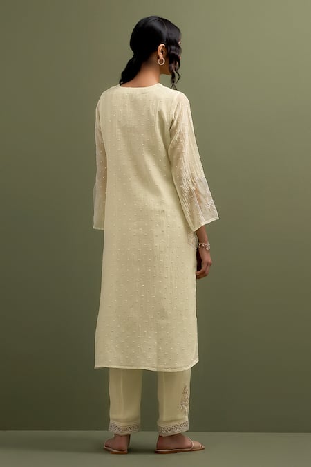 Buy_Anantaa By Roohi_Yellow Chanderi Embroidery Split V-neck Floral High Low Kurta With Pant _Online_at_Aza_Fashions