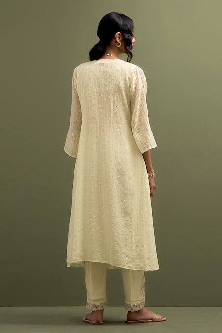 Buy_Anantaa By Roohi_Yellow Chanderi Sequins, Embroidery Floral Thread Gathered Kurta With Pant _Online_at_Aza_Fashions