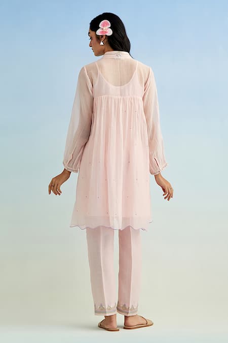 Buy_Anantaa By Roohi_Pink Chanderi, Cotton Embroidery Collared Kurta Set _at_Aza_Fashions