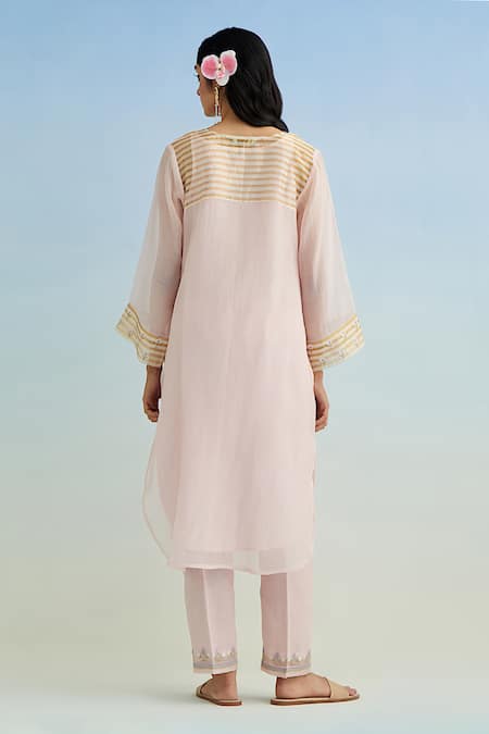 Pink Chanderi Embroidery Round Neck Kurta Pant Set