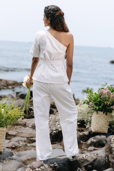 Hight waist trousers, Inseam side pockets, Note: Top worn by the model is not for sale