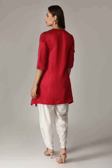 Buy_Aneehka_Red Cotton, Viscose Beads, Lace V-neck Short Kurta And Dhoti Pant Set_at_Aza_Fashions