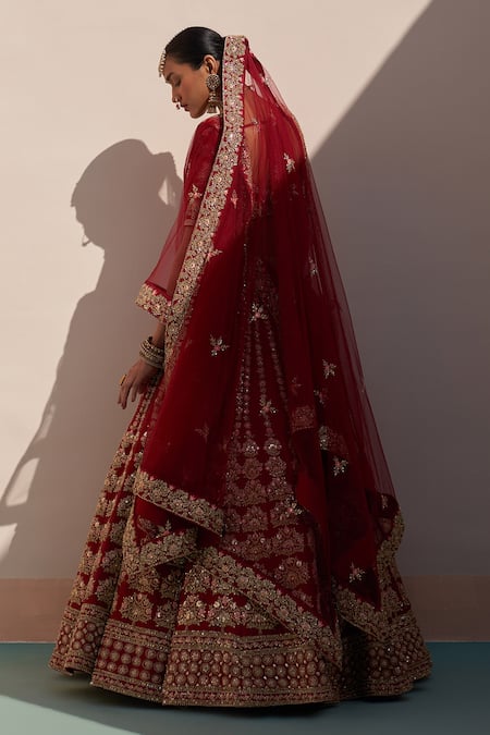 Buy_Angad Singh_Maroon Silk Sequins, Cut Work, Embroidery Zardozi Floral Bridal Lehenga Set _at_Aza_Fashions