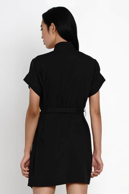 Buy_Angry Owl_Black Bamboo Cotton Mandarin Collar Shirt Dress _Online_at_Aza_Fashions