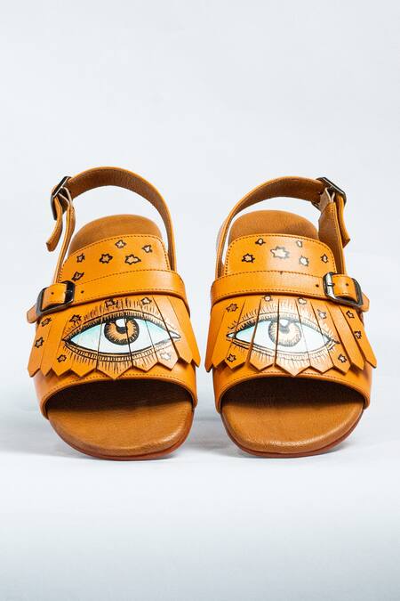 Unique eye motif with star designs, Fringe detailing adds texture, Buckled strap for adjustable fit