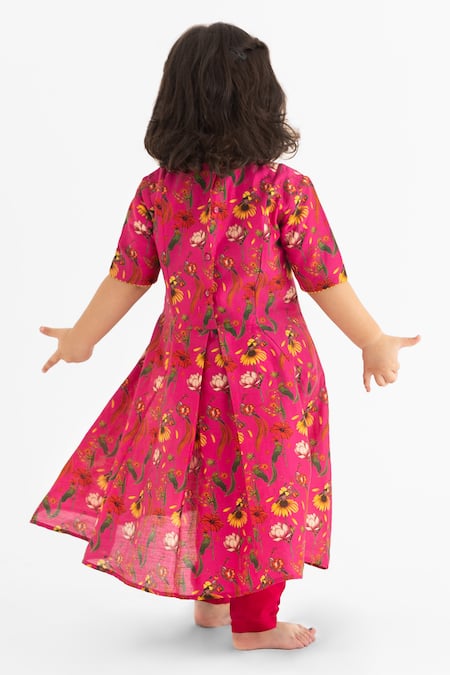 Pink anarkali featuring half sleeves, round neckline & all-over chidiya and tota print. Paired with a coordinating pyjama.