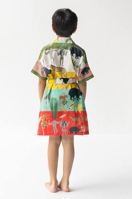 Multi Color Cotton Voile Printed Animal Chidiya Ghar Ki Sair Robe