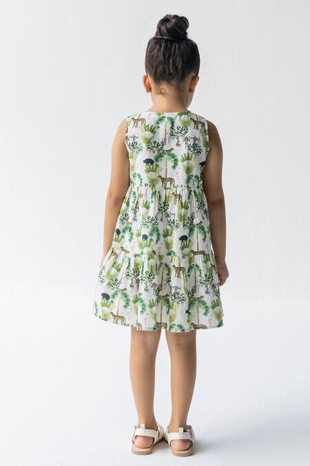 Ivory Cotton Voile Printed Jungle Sunderban Tiered Dress