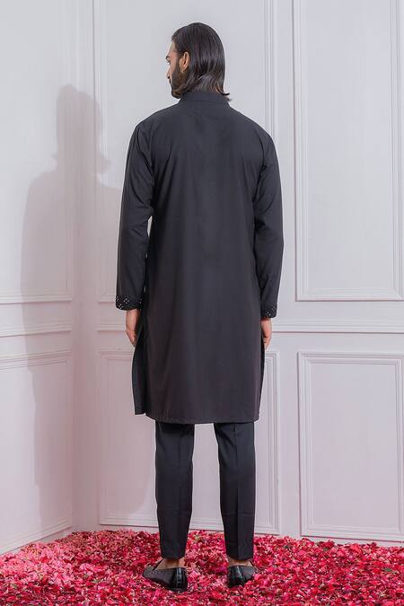 Black Cotton Silk Mirror Work Embellished Kurta Set