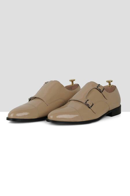 Beige monks featuring stitchline thread embroidery and double strap detailing