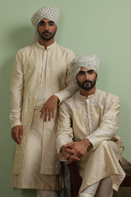 Off White Silk Thread Tafeer Layer Embroidered Kurta