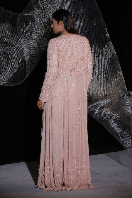 Buy_Ankur J_Pink Silk Crystals, Pearls, Embroidery Round Embellished Jacket Lehenga Set _at_Aza_Fashions