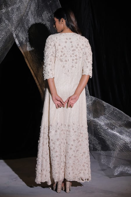 Buy_Ankur J_Beige Silk Pearls, Crystals Round , Open Embroidered Jacket Lehenga Set