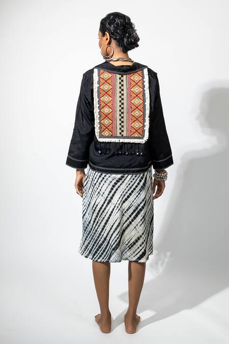 Black Cotton, Silk Pom-poms, Tassels And White Tie-dye Midi Dress & Jacket Set