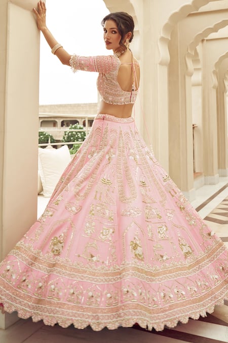 Buy_Annus Creation_Pink Silk, Organza Pearls, Sequins, Elephant And Bird Motif Bridal Lehenga Set_at_Aza_Fashions
