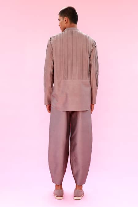 Light grey relaxed-fit trouser with pintucks hem.