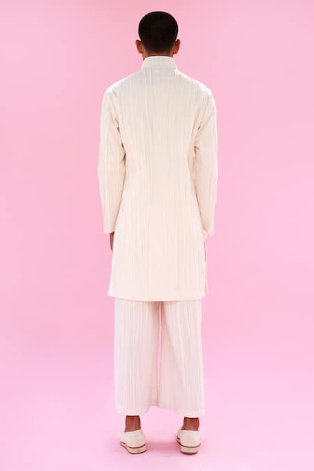 Ivory sherwani with crinkle textured detail & mandarin collar.