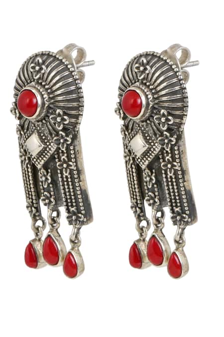 Silver Plated Stones Coral Embellished Tribal Earrings