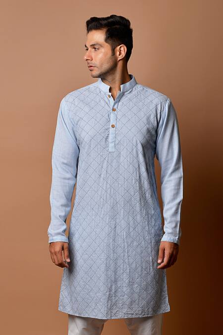 Light blue kurta with textured motifs & front button placket.