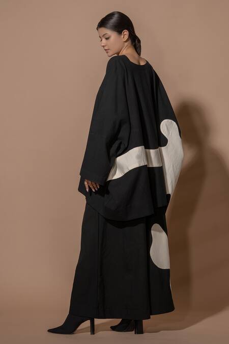 Buy_Stoique_Black Cotton Matty Abstract Applique Flared Pant_Online_at_Aza_Fashions