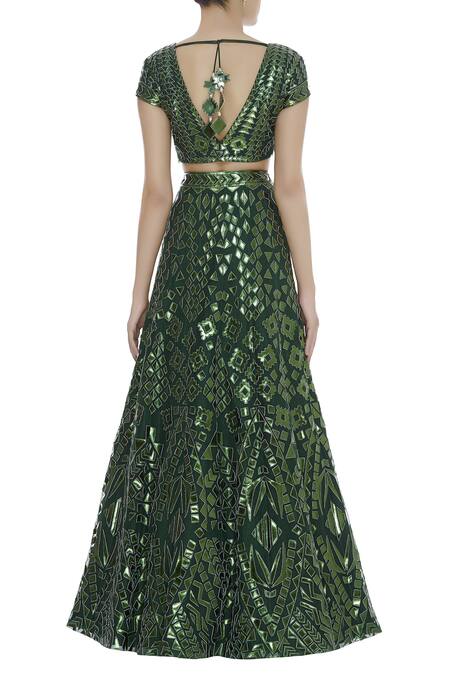 Green Applique Leather Embroidered Lehenga Set